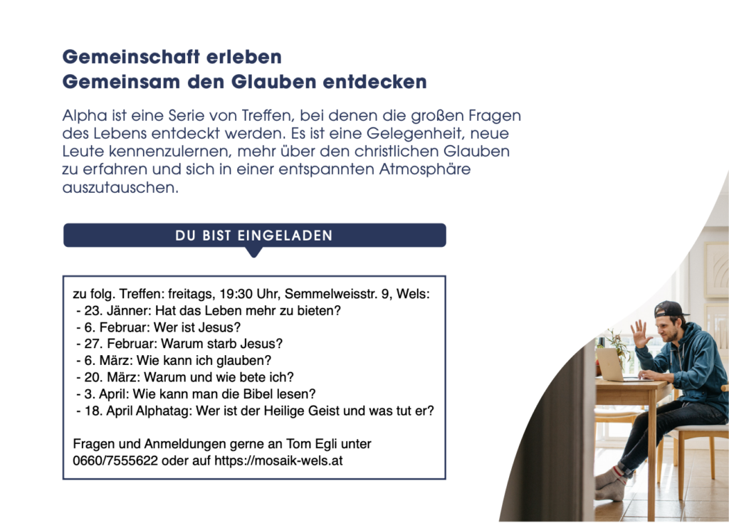 23. Januar 2026, 19:30: Alpha: Hat das Leben mehr zu bieten?